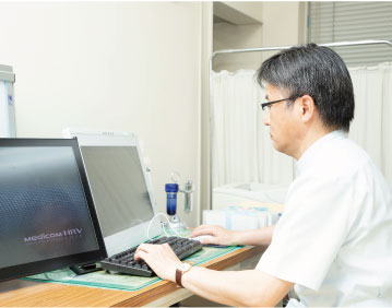 電子カルテを導入していますので、過去の病歴を速やかに確認することができます。 採血結果・胸部レントゲン・心電図などの結果を、画像を通して説明することも可能です。